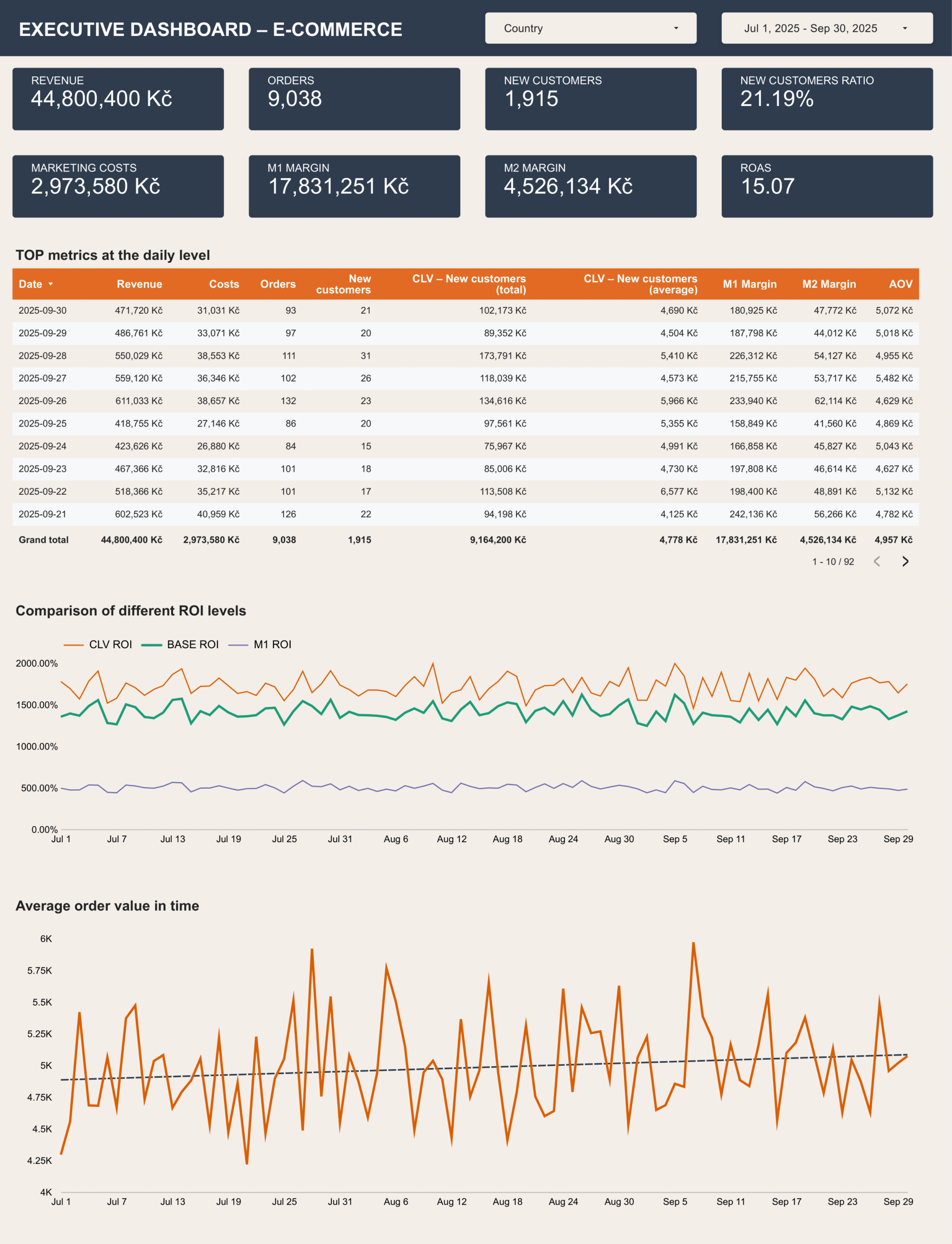 Nejjednodušeji si jednotlivé principy, jak mají vypadat data pro c-level oproti marketingu, ukážeme na jednotlivých reportech. Všechny pohledy se zaměřují  čistě na e-commerce. Na webináři jsme se sice bavili o rozdílech u leadových firem, ale bojím se, že by článek byl příliš nepřehledný. Leadový business si proto necháme na příště.